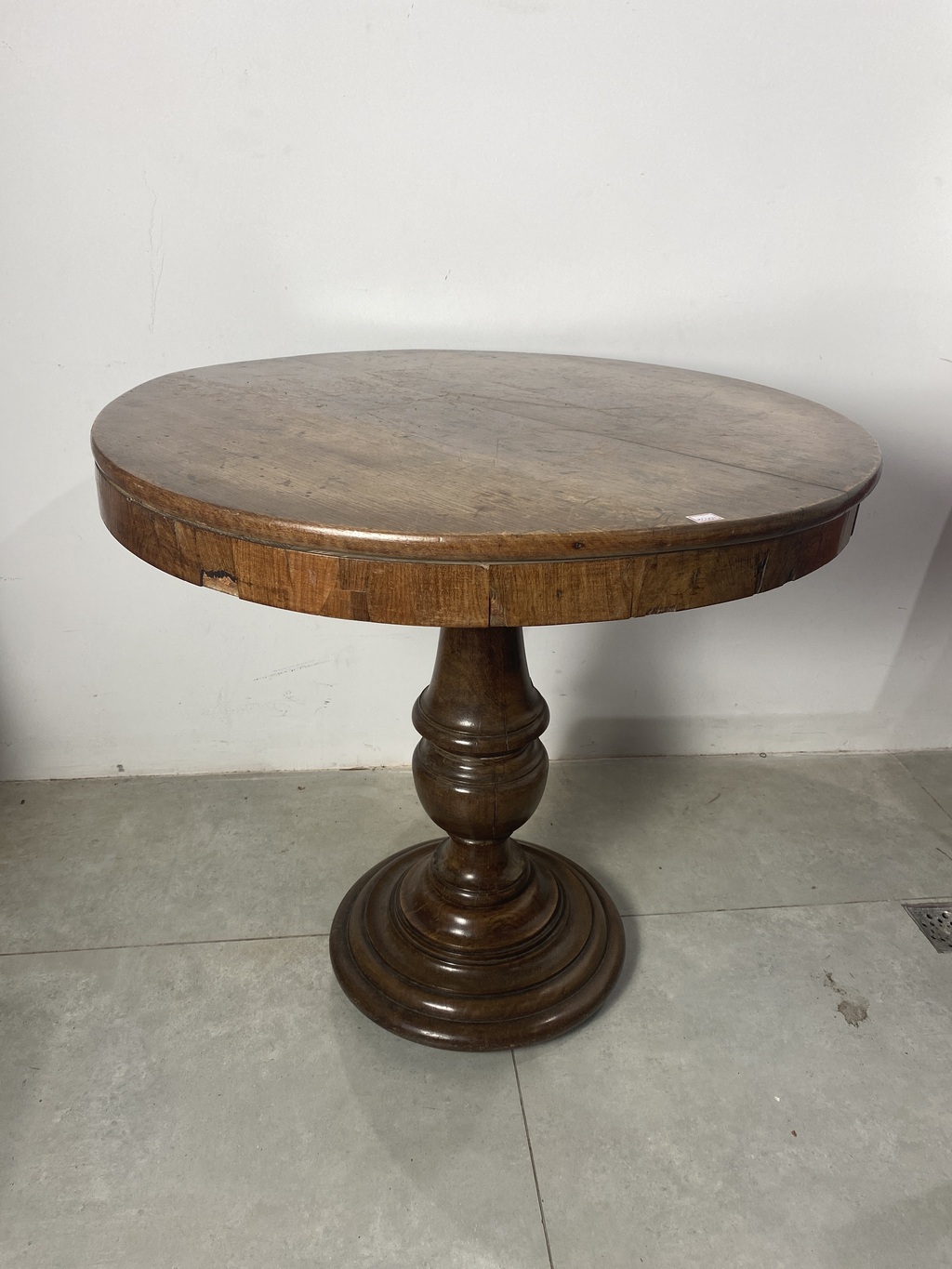 Mesa de canto redonda em madeira com belo trabalho no pé. Mede 80cm de diâmetro x 76cm de altura.